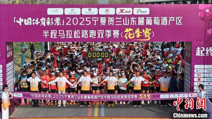 中新网银川4月20日电 (记者 李佩珊)中国含“酒”量最高半马——2025宁夏贺兰山东麓葡萄酒产区半程马拉松路跑双季赛(花季赛)20日鸣枪开赛。